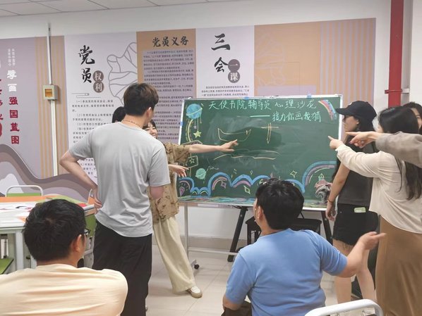 活动开始,书院心理健康教育办公室负责人刘若文对本次团体心理活动的主题和目标进行介绍。活动在充满欢声笑语的破冰游戏“接力你画我猜”中拉开帷幕。接着,主题活动“你来比划我来猜”将活动氛围引入高潮。整个团辅过程充满乐趣,大家不断在游戏中认识对方、了解自我,在愉快的互动中增长了心理健康相关知识,亦有许多的个人反思和心灵成长。