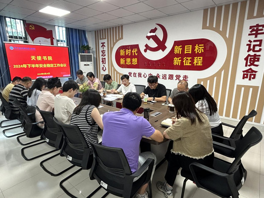 8月28日下午,天使书院在书院二楼会议室召开2024年下半年安全稳定工作会议,书院班子成员及全体专职辅导员参加会议。会议由党总支书记、院长王芳主持。