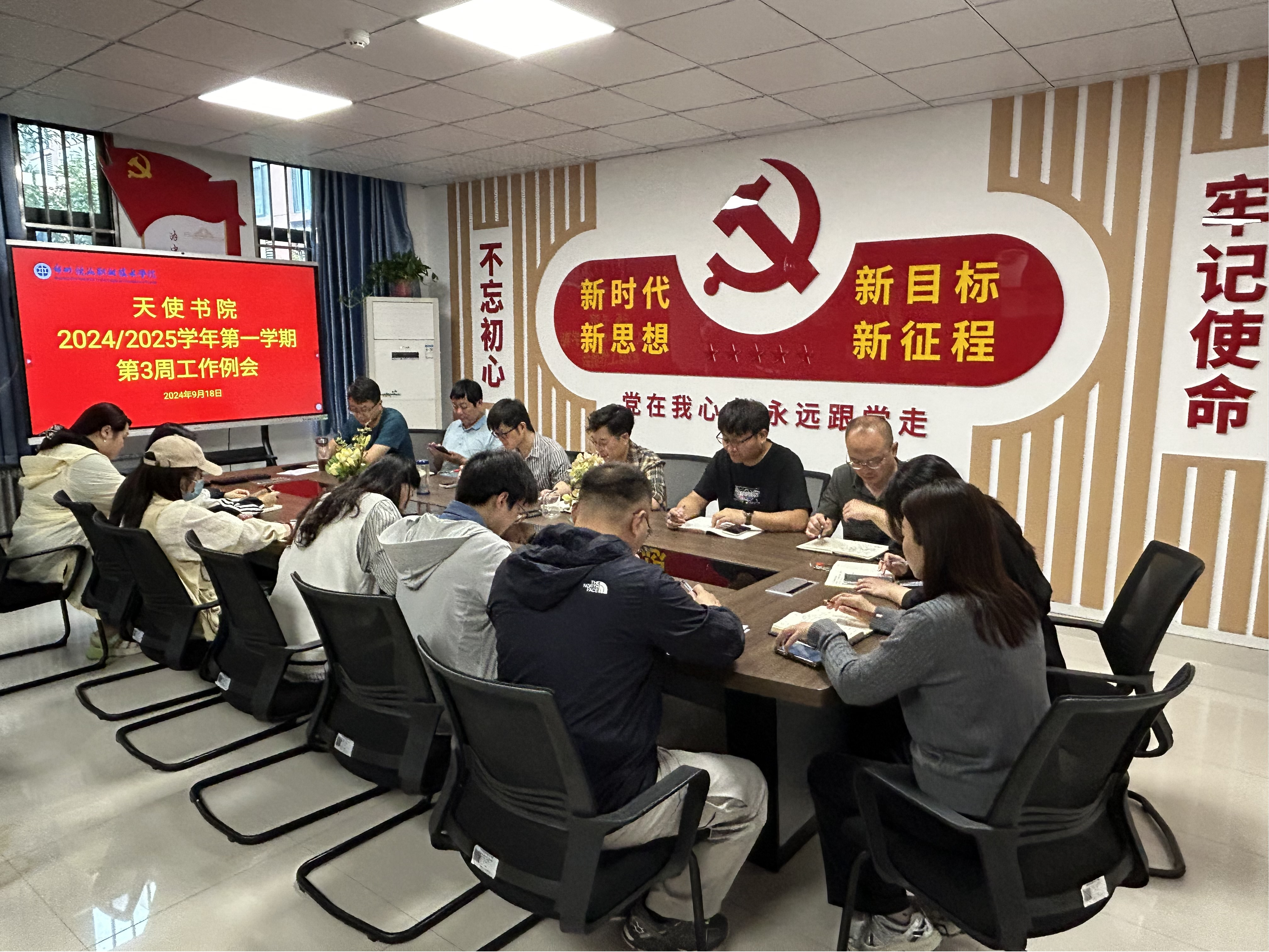 9月18日上午,天使书院在书院二楼会议室召开本学期第三周学生工作例会,书院班子成员及全体专职辅导员参加会议。会议由副院长王小珂主持。
