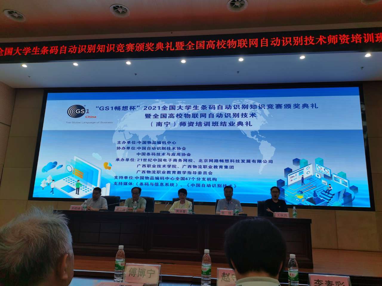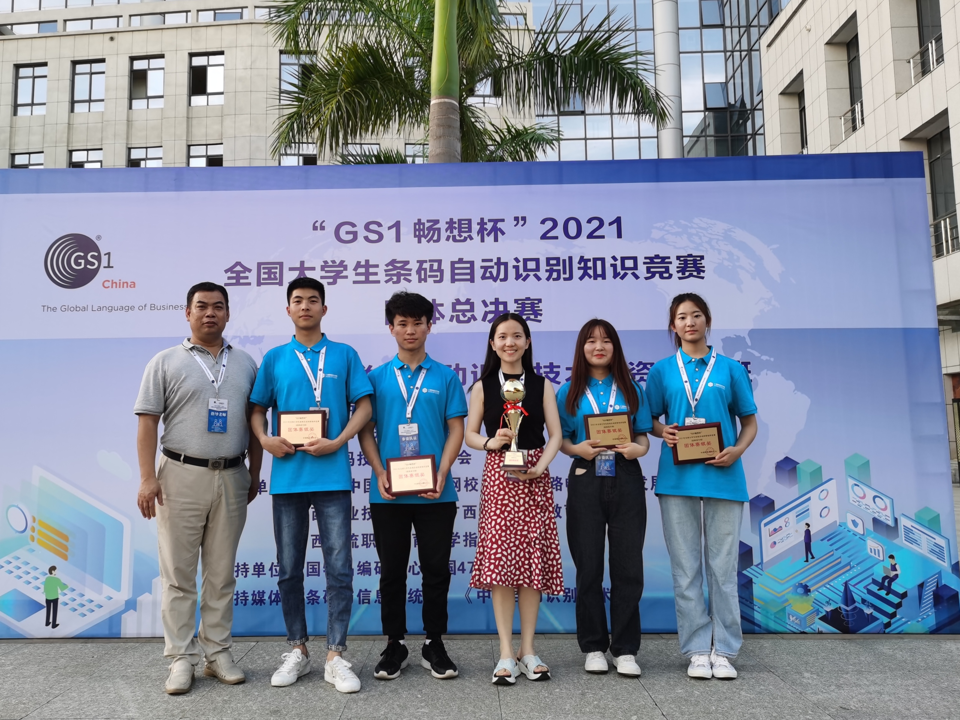 近日,历经三个多月的“GS1畅想杯”2021全国大学生条码自动识别知识竞赛团体总决赛于广西职业技术学院落下帷幕。我校代表团在陆光耀、王子琪两名老师带领下,由队长陶静龙,队员李聪伟、韩柳姗、刘佳淇组成的参赛团队,在本次竞赛活动中披荆斩棘、不惧艰辛,从全国百支团队中脱颖而出,成功入围团体赛总决赛,并且以预赛第八名,决赛第三名的好成绩获得团体赛总决赛的银奖。本次获奖是我校学子在建校70周年之际为母校送上一份厚重的贺礼。