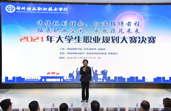 11月18日下午,我校2021年大学生职业生涯规划大赛决赛在新校区第二报告厅隆重举行。校长马玉霞出席大赛活动,郑州大学职业发展教育研究所所长王献玲教授、河南大学靳利粉教授、华北水利水电大学张卫健教授、河南财政金融学院刘筠教授、中国铁路郑州局党校原副校长刘园担任大赛评委。校团委、招生就业处、创新创业学院负责人,创新创业与就业指导专兼职教师,各年级学生代表参加线上线下比赛活动。
