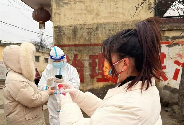 物流管理21A1班王瑞洁、会计21A1班杨澜:“寒假期间疫情又严重了起来,我们一起在河南省许昌市禹州市古城镇龙屯村参加志愿服务工作,负责协助登记核酸检测人员信息以及维持现场秩序。通过本次志愿服务,不仅体会到了医护人员的辛苦,而且在帮助别人的同时自己也收获了很多。”