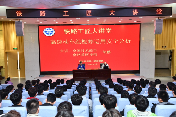 邹鹏、罗烽光分别为陇海书院、复兴书院学生举办了“铁路工匠大讲堂”专题讲座。邹鹏以“高速动车组检修运用安全分析”为题,从动车组检修运用工作的基本内容、岗位流程及作业标准,人身安全与动车组检修运用的紧密联系,安全对企业的影响等方面向学生分享了工作经验。罗烽光围绕“高速动车组运用质量管理”这一主题,向与会师生讲解了动车基本知识、作业标准、检修质量卡控要求,提高动车组检修质量对动车运用、安全运行的影响等内容。