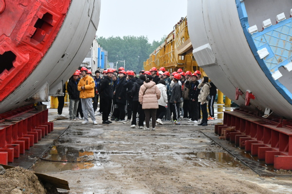 工程医士班同学在综合办公楼参观工程医院展厅和沙盘,听取坝道工程医院建设情况介绍,观看《坝道工程医院——“产科教融合”创新平台》宣传片。随后,在讲解员及专业老师的带领下,同学们分别参观盾构机、TBM等大国重器;走近地下油库、地下生态储粮示范试验仓、地下综合管廊试验场等足尺试验平台,详细了解高铁实训试验场的材料与结构,关注装配式支护结构、城市大直径竖井掘进等技术的发展。