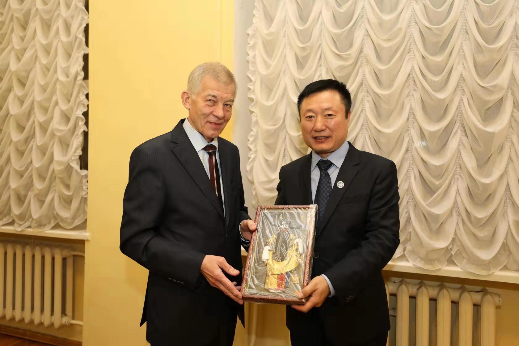 与俄罗斯交通大学校长廖文·鲍里斯·阿里克谢耶维奇交流