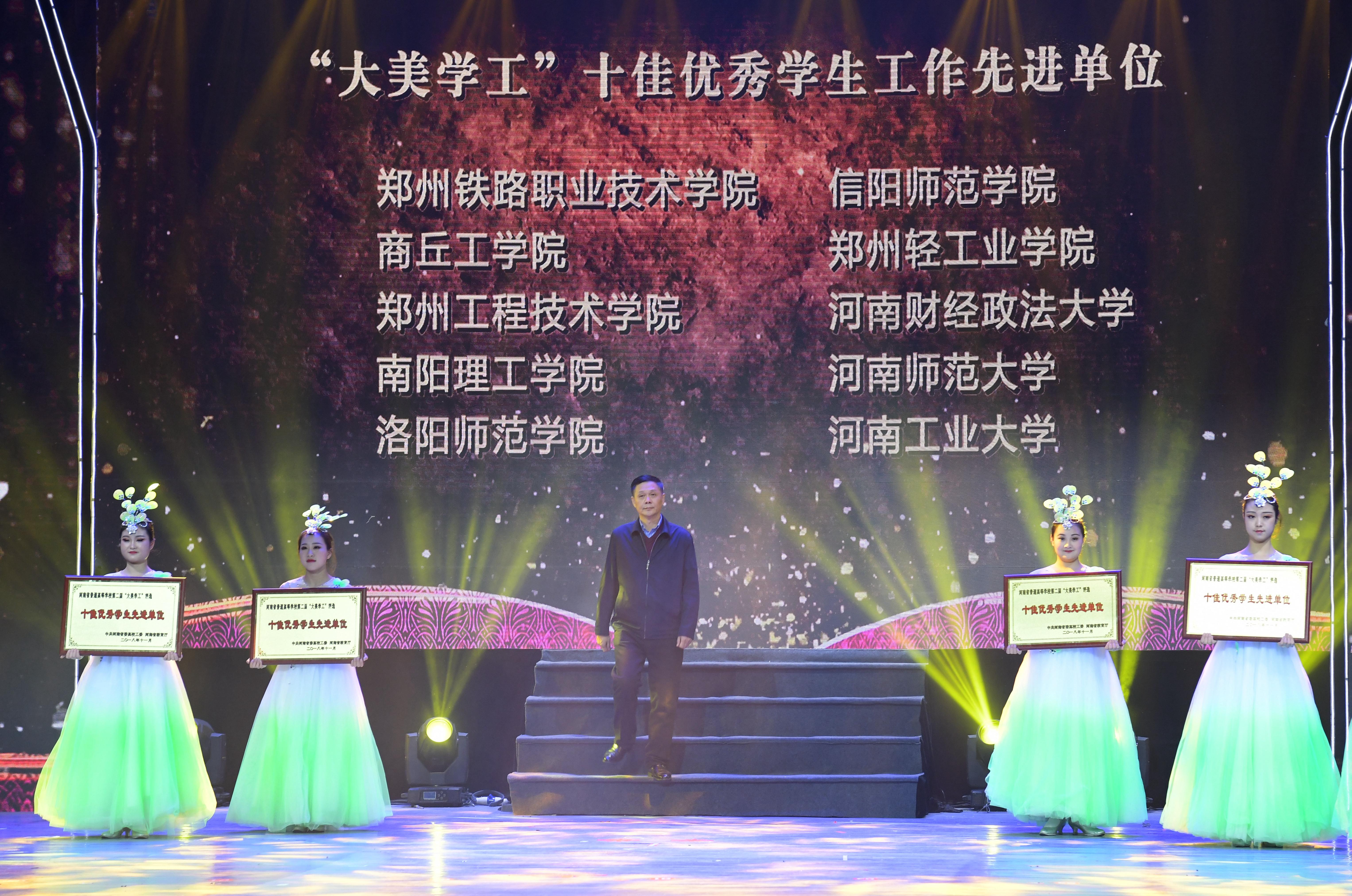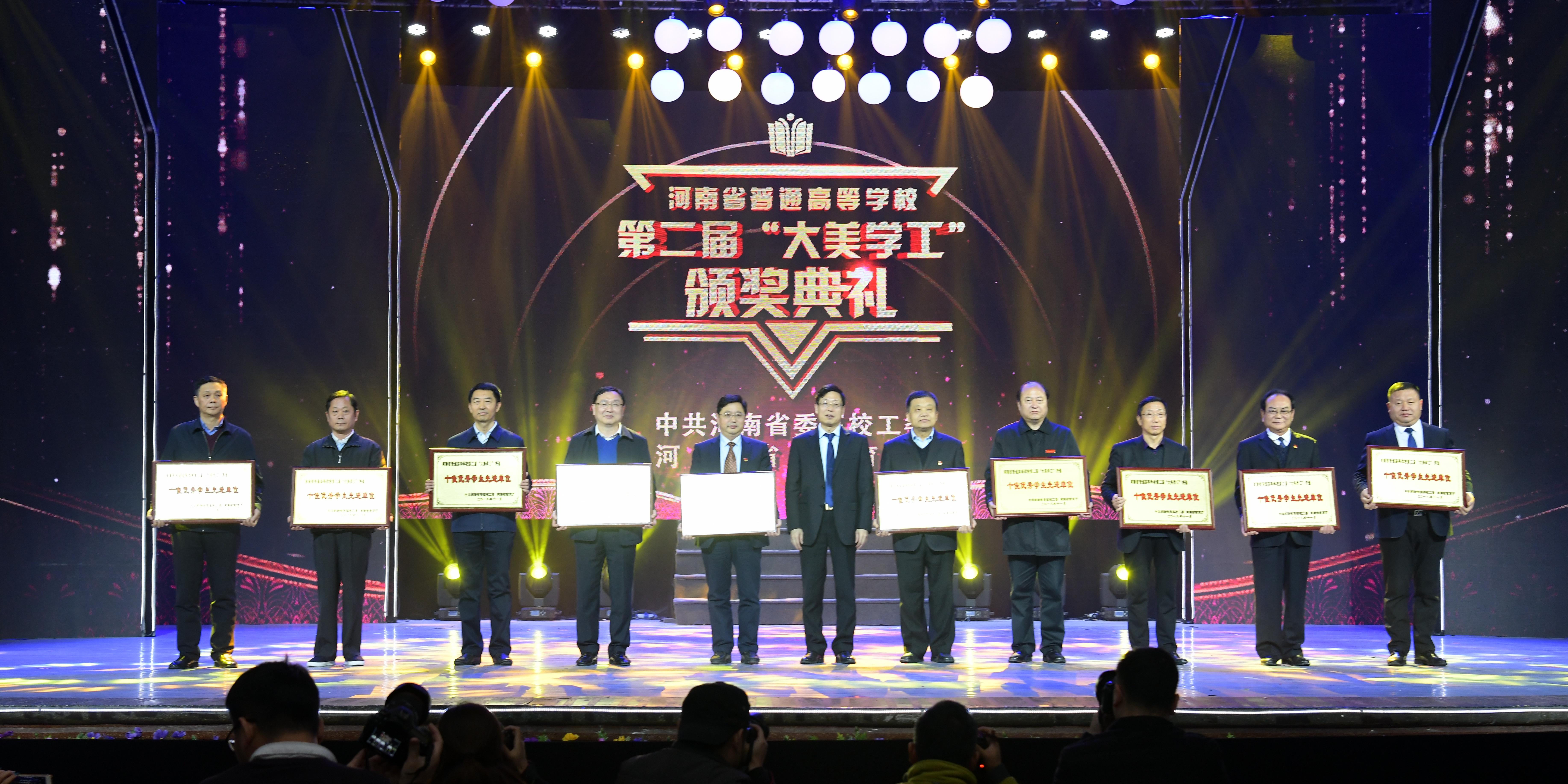 12月5日,由河南省高校工委、河南省教育厅主办的“河南省普通高等学校第二届‘大美学工’颁奖典礼”在河南大学举办,省教育厅副巡视员李金川出席典礼并讲话。我校荣获“大美学工”十佳优秀学生工作先进单位称号,是唯一一所获此奖项的高职高专院校。我校党委书记苏东民出席颁奖典礼并代表学校领奖。