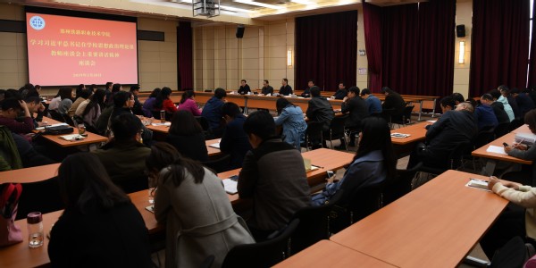 3月28日上午,学校召开学习贯彻习近平总书记在学校思想政治理论课教师座谈会上重要讲话精神党委中心组学习扩大会暨座谈会。校党委中心组成员出席会议,各党总支书记、思政课专兼职教师参加座谈会。党委副书记、纪委书记谢乾主持会议。