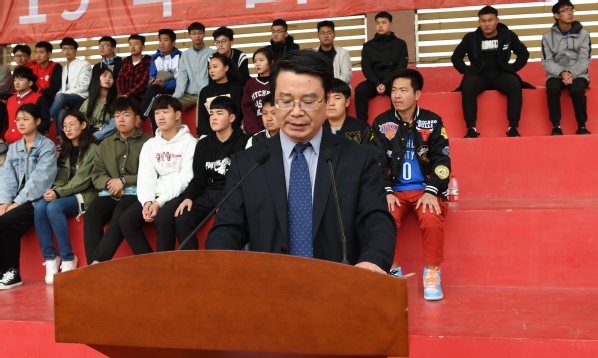 校长孔凡士致闭幕词。他代表学校党委、行政向在本次运动会中取得优异成绩的集体和个人表示热烈的祝贺,向为筹备运动会付出辛勤劳动的组委会全体成员和积极参加运动会的全体运动员、教练员、裁判员,以及所有为运动会付出努力的老师们、同学们表示衷心的感谢!他指出,本届运动会准备充分、组织严密、进展有序、成绩显著,各项赛事激烈交锋、精彩不断,运动会始终洋溢着团结、竞争、友爱的热烈气氛。同时,他希望全校师生携起手来,加强锻炼,强健体魄,把奥林匹克“更高、更快、更强”的口号化作强大的精神动力,在今后的学习与工作中持续拼搏进取,不断创造佳绩,续写学校事业发展灿烂辉煌的新篇章!