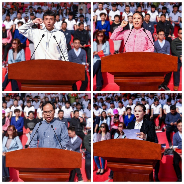 庄严的升国旗、奏唱国歌仪式之后,校长孔凡士致开幕词。他代表学校党委和行政向筹备运动会辛勤工作、倾情奉献的全体工作人员表示衷心的感谢,向刻苦训练、积极备战的运动员及同学们表示亲切的问候。孔凡士指出,2018年是我校全体师生员工励精图治、奋力拼搏的一年,也是我校事业发展取得重大突破与骄人成绩的一年。体育竞赛更是捷报频传,学生体育竞赛综合成绩领跑河南省高职院校。此次运动会,既是对我校体育工作的集中展示和全面检阅,也是对广大师生自强不息、追求卓越体育精神的大力弘扬。