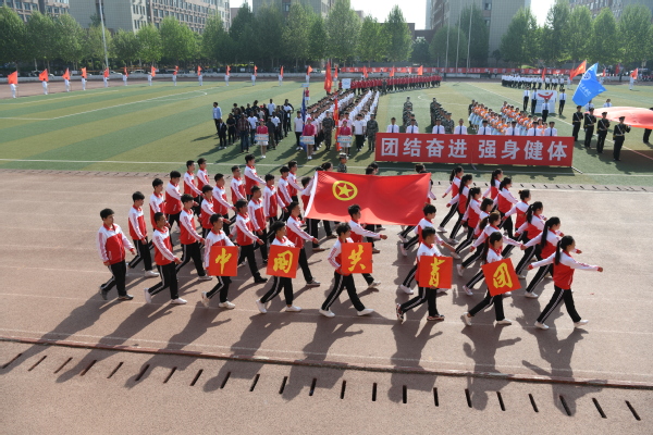 开幕式后,大型团体操接续表演。爱国基调主旋律嘹亮唱响在运动会场上,500名学生身着绚彩服装,挥舞彩绸,姿态万千,尽情享受运动魅力,尽情释放青春活力,为广大师生送上了震撼的视觉盛宴。