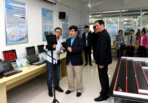 方乃纯一行参观了我校机车仿真驾驶实训室、铁路接发列车实训室、高速铁路轨道检测与精调实训基地、地下施工虚拟仿真实训中心、学生科技创新社团,对我校产教融合、校企合作、育训结合的协同育人模式予以高度评价。