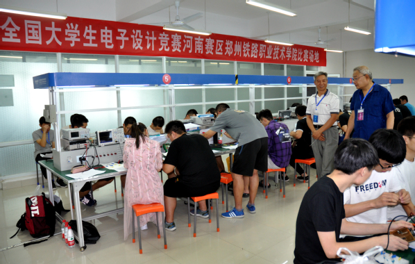 2019年全国大学生电子设计竞赛于8月10日结束,河南赛区共有包括本科组和专科组在内的56所高校、925支队伍、2775余名学生参赛,比2017年竞赛增加310支队伍,是河南赛区历届参赛队伍最多的一届比赛。根据河南省教育厅及赛区组委会安排,河南赛区所有参赛作品的评审测评工作在我校举行,测评地点为学校6号楼实践教学中心电工电子实训室。8月11至15日,进行竞赛作品的评审测试工作,评审测评结束后,专家组根据竞赛成绩和答辩成绩评选出了省级一、二、三等奖;8月18日至19日,进行了河南赛区推荐国家级奖的83支优秀参赛队的综合测评工作,并报送全国大学生电子设计竞赛组委会参加国赛评审。