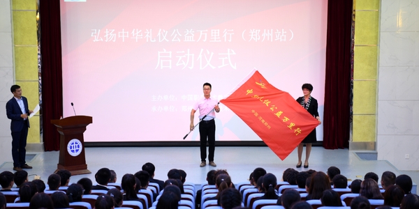 启动仪式上,谢乾在致辞中表示,中华民族在几千年的历史中创造了灿烂的文化,形成了高尚的道德准则、完整的礼仪规范和优秀的传统美德。传承和弘扬中华优秀礼仪文化,是教育的责任和使命,希望以中华礼仪万里行活动为契机,多种形式、多种载体,不断加强和改进中华优秀礼仪和职业礼仪教育,并寄语广大同学们学礼、明礼、守礼、弘礼,养成良好的行为习惯和个人素质,涵养温文尔雅、恭谦礼让的品质风范,以行践言、以礼致远,共同建设文明之校园、和谐之社会、礼仪之国家。蔡少惠主任宣读了“中华礼仪公益万里行倡议书”,并进行了宣誓和授旗仪式,我校成为中华礼仪公益万里行的郑州站牵头院校。蔡少惠号召青年学生身体力行、率先垂范,争做中华文明礼仪的践行者;修身立德、风正行远,争做中华文明礼仪的传播者;心怀大爱、勇于担当,争做中华文明礼仪的引领者。