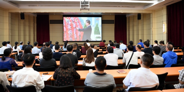 按照校党委统一部署,校党委理论学习中心组以集中学习扩大会的形式组织观看,全体党总支书记、支部书记、教师学生党员代表一起观看了仪式。观看完仪式后,大家纷纷表示,要继承和发扬革命先烈的优良传统,牢记苦难辉煌历史,传承爱国奋斗精神,聚焦立德树人根本任务,不忘初心,牢记使命,勇做新时代的奋斗者,以优异的成绩为新中国成立70周年献礼。