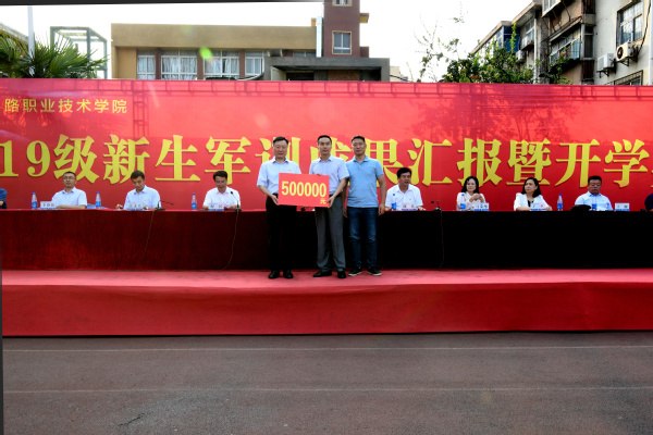 校长孔凡士发表讲话。他代表全校师生员工对全体新生表示欢迎,向圆满完成此次军训任务的同学和全体教官表示祝贺,向三名校友的捐赠表示感谢,并对全体新生寄语殷切希望。一是与祖国同心,以奋斗之歌厚植家国情怀。要时刻谨记习近平总书记“要做爱祖国、爱人民、爱共产党、爱社会主义的大学生”的重托,不忘社会责任,葆有家国情怀,砥砺创新创业精神,化爱国之情为报国之行,融爱校之心于刻苦学习,让个人价值在民族复兴伟业中熠熠闪光。二是与时代同向,以奋斗之姿练就精湛技艺。要牢牢把握时代发展的机遇期,通过专业知识学习和实践能力培养,练就过硬的技术技能本领,不负时代,用奋斗之姿让梦想与时代相向而行。三是与母校同行,以奋斗之光照亮美好明天。要敢于尝试新事物、乐于拓展新视野、善于发现新问题,常感相聚之缘、常怀感恩之心、常发奋斗之力,与母校携手同行,向明天求索奋发。四是与梦想同在,以奋斗之笔书写辉煌篇章。要将长远规划和短期目标有效结合,以笃实坚定的行动砥砺前行,立鸿鹄之志,展骐骥之跃,做脚踏实地的奋斗者。