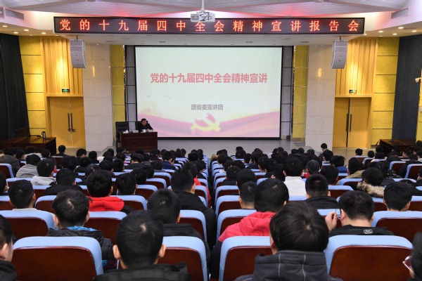 12月19号,团省委党的十九届四中全会精神宣讲团成员、团省委二级巡视员、组织部部长王鑫来校作“深入学习贯彻党的十九届四中全会精神”专题报告。报告会由党委副书记、纪委书记谢乾主持。300多名学生代表、团干部、青年教师、思政课教师代表参加学习。