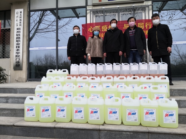 近日,在全国上下全力以赴防控新冠肺炎疫情的关键时期,学校收到了校友及爱心企业沉甸甸的心意。我校2000级校友姚赋代表全班同学向学校捐赠600公斤84消毒液、20支水银体温计;郑州金鹿鸣餐饮管理有限公司为学校捐赠300公斤消毒液、200公斤医用酒精。党委书记苏东民代表学校接受捐赠并表示感谢,相关部门负责人一同参加了捐赠活动。