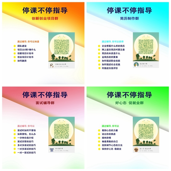 学校多渠道、宽路径创新开展线上指导活动,确保在线指导高效进行。一是实施“群聊”帮扶。在疫情防控期间,学校就业指导教师下沉到学生中去,通过建立“就业好心态”群、简历制作群、面试辅导群等,有针对性地为学生进行线上辅导和解答,对就业困难的学生实行“一对一”帮扶工作。二是双向积分管理。依托TAS平台,学生自主学习职业发展和创新创业微课,教师在“你问我答”模块与学生互动交流,解决疫情期间学生所遇各类问题,学生可在平台获得自主学习积分,教师也可获得辅导积分。三是丰富微课资源。根据学校统一部署,教师自行录制《当求职遇到疫情》《企业说就业》等微课并上传至TAS平台“微课堂”模块,方便学生系统学习。四是落实分层教学。对于2019级学子,注重调整学生就业心态、提升学生制作金简历的能力;对于2018级学子,侧重于提供创新创业项目的辅助指导。