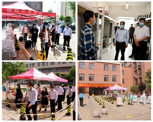 为认真贯彻习近平总书记关于疫情防控工作的重要指示精神,落实河南省新冠肺炎疫情防控指挥部教育系统工作专班办公室关于春季学期返校复学工作要求,扎实做好疫情防控和返校复学前各项准备工作,切实提高防控实战能力,4月30日上午,根据学校开学前后疫情防控工作方案的总体安排,我校举行学生返校复学演练,党委书记许琰,校长孔凡士,党委副书记、纪委书记谢乾,副校长徐宏平、王保军、倪居、焦宏涛现场观摩并指导演练,学校返校复学工作领导小组各专班人员、参演人员及相关工作人员等150余人参加演练活动,郑东新区高校“五员专班”王献坡一行莅临我校调研督导返校复学演练。