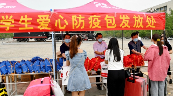 许琰、孔凡士等校领导向返校学生送上了“爱心防疫包”,并仔细叮嘱他们返校后要注意自我防护,严格遵守学校疫情防控各项规定,完成学习和实训任务。