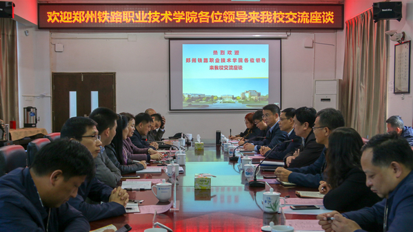 许琰一行来到湖南铁道职业技术学院,与该校党委副书记杨利军、副校长张莹以及相关部门负责人进行了座谈交流。杨利军介绍了该校的办学理念、人才培养和教育教学改革成就。许琰介绍了我校的基本情况,并指出,两所学校具有悠久的办学历史,行业特色明显,交往联系密切,希望双方继续携手共进,在教育教学、科研服务、人才培养、专业建设等方面进行广泛交流,建立合作联系机制。