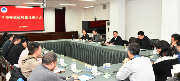 12月10日,校党委在办公楼302会议室召开师德师风建设座谈会,党委书记许琰,党委副书记、纪委书记谢乾,副校长董黎生出席会议,教职工代表,学校办公室、组织部、宣传部、学生工作部、纪委办公室(监察处)、人事处、教务处、科研外事处、发展与质量管理处、后勤服务集团等职能部门负责人共20余人参加会议。会议由党委副书记、纪委书记谢乾主持。