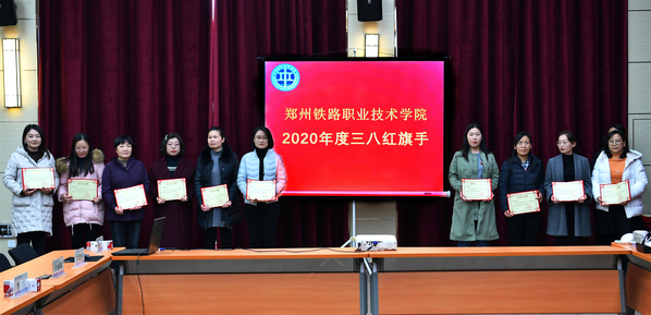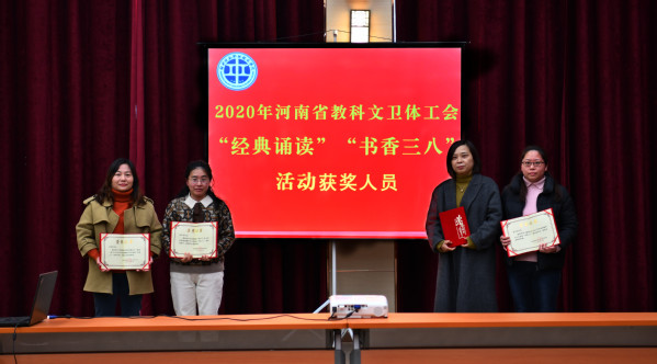 会上,工会相关负责人分别宣读了河南省教科文卫体工会关于“学习习近平新时代中国特色社会主义思想”经典诵读活动、“书香三八”读书活动的获奖情况及我校2020年度“三八”红旗手表彰决定。许琰、谢乾分别为受表彰的女教职工颁奖。