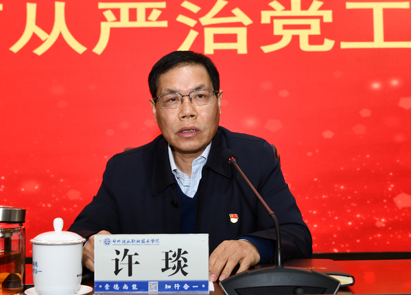 许琰表示,2021年是中国共产党成立100周年,也是“十四五”规划的开局之年,职业教育改革发展的宏观政策和外部环境都发生了深刻变化。与党和国家对高等职业教育、对高校党建工作提出的新的更高要求相比,与学校事业实现高质量发展、学校党的建设迈上新台阶的迫切需求相比,学校全面从严治党工作还存在不小差距,主要表现在基层党组织管党治党压力传导不均衡,政治站位不够高,落实全面从严治党主体责任不够有力;党员教育培训创新力度不够,培训方式方法较为单一,个别党组织开展工作缺乏实践性和有效性;干部作风转变不彻底,懒、散、慢、拖现象,好人主义和形式主义依旧存在,个别党员干部政治意识、担当精神仍不够强。