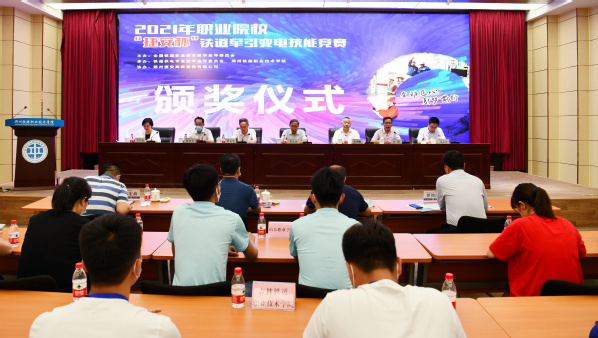 6月15日至19日,由全国铁道职业教育教学指导委员会主办,铁道供电专业教学指导委员会和我校承办,郑州捷安高科股份有限公司协办的2021年职业院校“捷安杯”铁道牵引变电技能竞赛颁奖仪式在学校第一报告厅举行。来自全国31所职业院校的61支参赛队、122名选手参加了比赛。