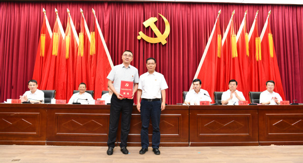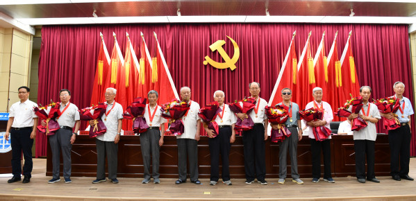 党委书记许琰为老党员代表颁发“光荣在党50年”纪念章