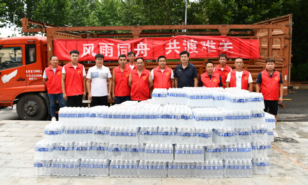 近日,郑州遭遇极端强降雨,市区出现严重内涝,受降雨影响,我校部分区域也出现积水汛情,学校自来水供应不时出现中断。听闻学校有关情况,得知目前还有近300名学生在校备战全国大学生机器人大赛、数学建模竞赛等赛事,我校校友李旭博所在的黄大王庙村党员救援队专程赶到学校,向学校捐赠了200箱纯净水。