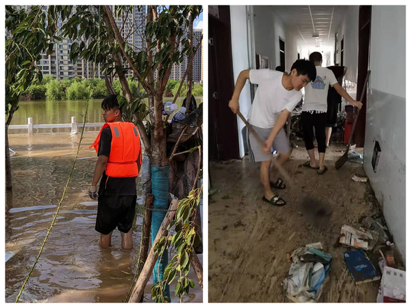 在防汛形势异常严峻之时,我校广大团员青年积极响应上级团组织号召,就近就便向党、团组织报到,踊跃投身各地抢险救援工作,用“青春堤坝”筑牢起防汛抗洪的钢铁长城,以实际行动诠释了当代青年的责任与担当。河南省青马班学员、校学生会成员邢振东、贠铖祺正在河南省青马班进行培训,在团省委的组织下前往巩义市米河镇协助当地志愿者搬运物资,在受灾安置点帮助老人和儿童。校学生会主席团成员管启萌报名参加了京广路办事处冯春社区的防汛志愿者,在街道清理淤泥,帮助社区学校清理地面楼梯,搬运救灾物资。校学生会工作人员唐永琦,在汛情严重时,加入新乡市抗洪救灾志愿队,先是跟随救援队搜救转移群众,又到牧野湖搬沙袋进行防洪工作,在漫到胸膛的水里,连续6小时接送沙包,身体力行地践行了“不怕苦、不怕累,连续作战”的志愿服务精神。