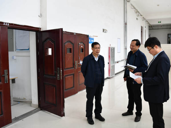 新学期线下上课第一天,学校党委书记许琰深入教学楼,就教师上课、学生到课、课堂教学秩序及教学运行等情况进行了全面检查,并且深入课堂进行随机听课。许琰对开学前教育教学、后勤保障、安全保卫等各项准备工作给予了充分肯定,同时要求各部门坚决扛稳政治责任,强化责任担当,充分考虑我校多校区办学实际,统筹处理好疫情防控与教育教学的关系,确保我校新学期学生顺利安全返校、恢复线下教学活动。