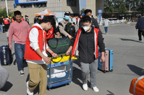 报到期间,按照排队疏导、健康扫码、行李消杀、智能测温、身份核验等五步流程,依次有序入校。各个书院分设人脸识别、信息收集、入住宿舍等三个环节,“一站式”化入学手续。辅导员老师早早到书院现场布置工作,热情周到地迎接同学们的到来;引导员定岗定位定人,报到处、公寓楼、分楼层全方位指引,细致服务新同学;志愿者始终坚守在迎新第一线,哪里有需要,哪里就有“志愿红”的身影,使得整个迎新报到工作更快速、更和谐、更温馨。