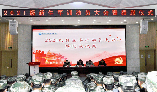 10月15日下午,我校2021级新生军训动员暨授旗仪式在学校第二报告厅举行。副校长徐宏平出席动员会,党政办公室、党委宣传部、党委学生工作部、团委、后勤服务中心、校办产业中心党政负责人、各书院党总支副书记及新生辅导员参加动员会。