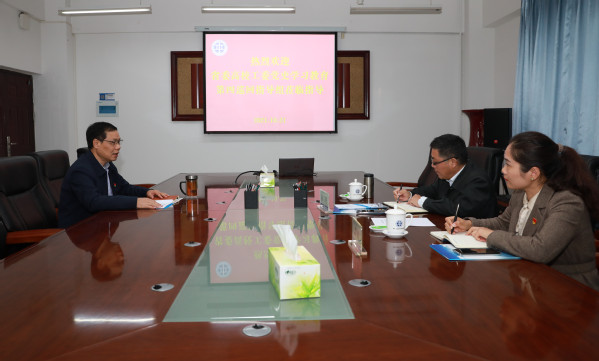 10月21日下午,省委高校工委党史学习教育第四巡回指导组组长、河南省教育厅二级巡视员李培俊,指导组联络员、教育厅思想政治工作处一级调研员杨宗辉,指导组成员、华北水利水电大学环境与市政工程学院党委副书记郭婷一行到我校开展第二轮党史学习教育巡回指导。指导组采取汇报会、校领导个人访谈、查阅资料、实地调研等方式,对我校党史学习教育开展情况进行指导。党委书记许琰作专题汇报,在校校领导参加汇报会。