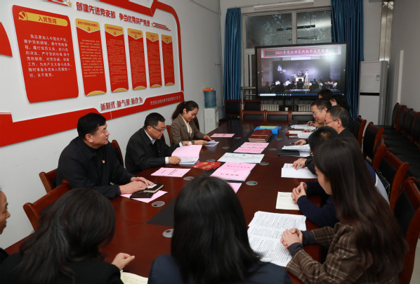 许琰以《坚持“三强化三推进”,持续推动党史学习教育走深走实》作了专题汇报。许琰指出,学校党委将党史学习教育融入立德树人全过程,深入学习贯彻习近平总书记“七一”重要讲话精神,坚持提高站位抓学习、创新形式抓落实、学做结合抓实效,切实引导全校师生做到明理、增信、崇德、力行。