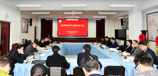 12月21日,学校召开党委理论学习中心组学习扩大会议,深入学习研讨党的十九届六中全会精神、中央经济工作会议精神,学习研讨改革开放和社会主义现代化建设新时期、中国特色社会主义新时代两个时期的历史。校党委中心组成员、各党总支(直属党支部)书记参加会议。会议由党委书记许琰主持。