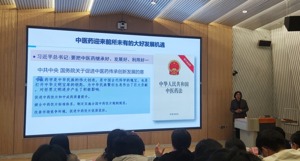 仪式结束后,张振凌教授为全体师生作题为“河南中药饮片炮制传承与创新”的报告。她结合自身多年教学科研经验,深入浅出地为学生们讲解了河南省中药饮片炮制文化、炮制技术、炮制研究与传承,增强学生专业自信,助推学生职业发展,也为老师们从事中药创新研究提出了新思路。