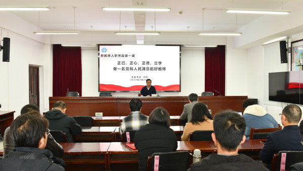 2月25日下午,新教师入职培训结业仪式在办公楼302会议室举行,党委书记许琰,副校长董黎生、胡殿宇出席仪式,指导导师代表和新入职教师参加结业仪式。党委书记许琰以《正己、正心、正德、立学,做一名党和人民满意的好教师》为题为新教师讲授入职思政第一课。