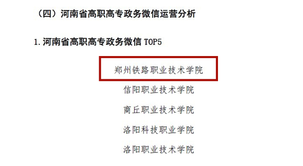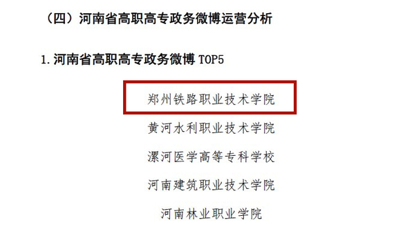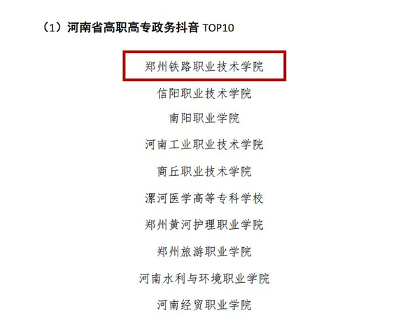 近日,河南省教育厅正式发布《河南省教育系统2021年度新媒体白皮书》。白皮书对河南省教育系统政务微博、微信、抖音、快手、视频号等新媒体平台的传播力、运营状况、典型案例等进行了梳理与分析。我校政务微信、政务微博、政务抖音包揽全省高职高专第一,学校政务微信、政务微博特色做法被收录至白皮书典型案例。