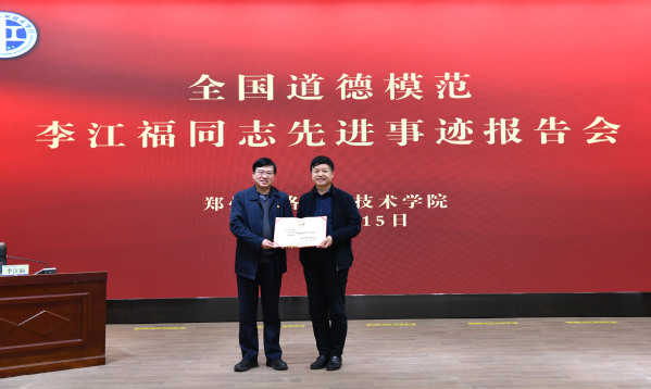 3月15日,全国道德模范、全国首届“诚信之星”李江福老师为我校师生以“诚信,让人生出彩”为题作了专题报告。报告会前,党委书记许琰热情接待了李江福老师。