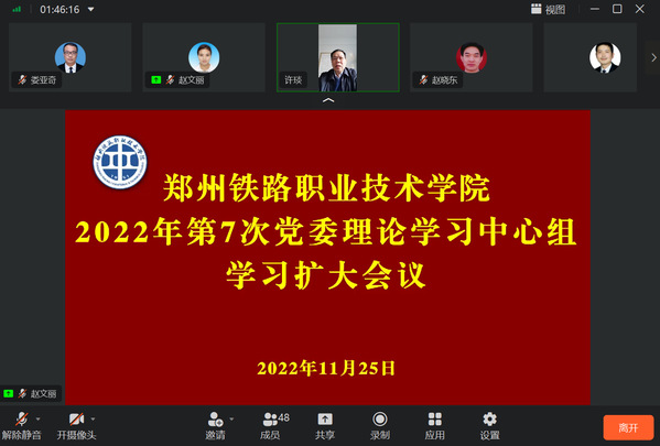 11月25日下午,我校召开党委理论学习中心组学习扩大会,深入学习领会党的二十大精神。校党委理论学习中心组成员、各党总支(直属党支部)书记通过线上钉钉会议的形式参会。会议由党委书记许琰主持。