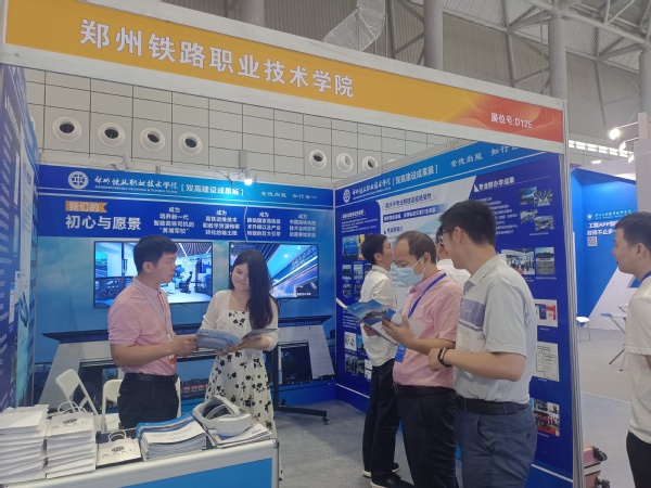 会议同期组织了“双高计划”建设院校成果展,我校主要从办学历史、人才培养、产教融合、社会服务、国际化建设、专业群建设等方面,展示双高建设以来的创新经验和取得的丰硕办学成果,吸引了众多参会者和专家驻足参观,取得了良好的宣传和推广效果。