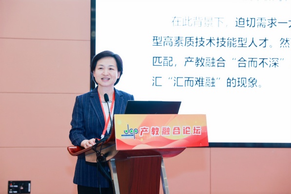 马玉霞以“产教融合、科教融汇,高铁行业产教融合共同体实践与探索”为题,在产教融合主题论坛作交流发言和经验分享。她从四个方面介绍了我校启动双高建设以来在产教融合方面的经验和特色做法。一是“两化融合、三级对接、三证融通”,打造高铁人才培养高地;二是“创融通转”,促进高铁行业科技创新发展;三是双向推进,铸就国内外高铁职业精英;四是“六位一体”,建立高铁特色科普体系。通过实践和探索,人才培养质量持续提升,产教科融合水平不断深化,区域引领示范和社会影响力持续增强,助推学校各项事业高质量发展。