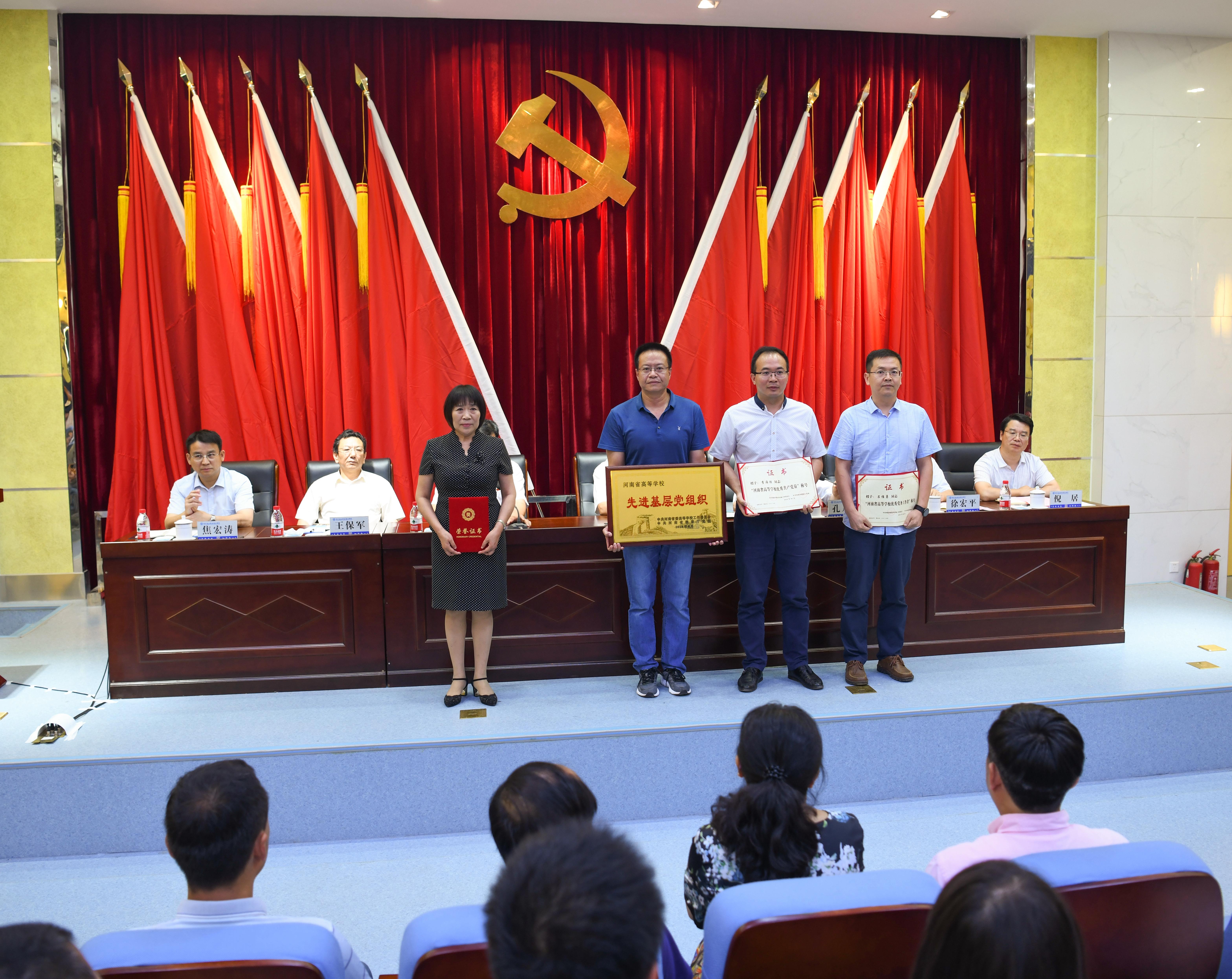党委副书记、纪委书记谢乾宣读中共河南省委高校工委、河南省教育厅《关于表彰委管高校优秀共产党员、优秀党务工作者和先进基层党组织的决定》和学校党委《关于表彰优秀共产党员、优秀党务工作者和先进基层党组织的决定》。我院李海胜同志被评为河南省高等学校优秀共产党员,我院姚存治、郭琼琼、张明真、马鹏飞等4位同志获“优秀共产党员”荣誉称号。