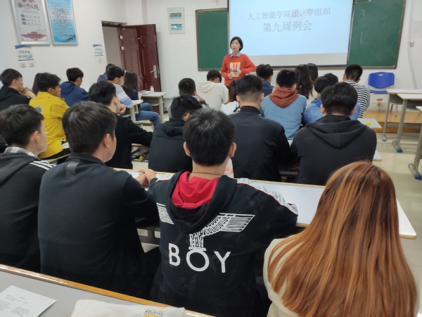 10月31日,人工智能学院于1339教室开展第九周工作例会,会议由马鹏飞主任和17、18、19级辅导员郭亚楠老师、王杏老师、陈中华老师主持,团、学组织成员以及大一、大三各班班长、团支书积极参加此次会议。