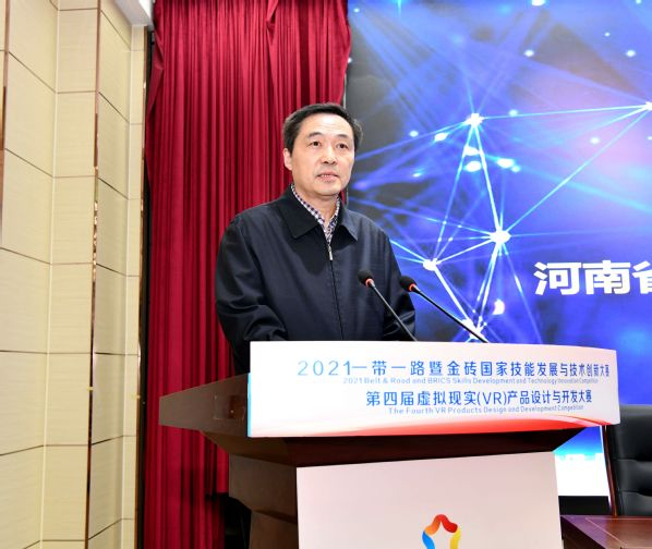 On behalf of Henan Lifelong Education Association, a co-organizer of the competition, Zhang Yawei, President of Henan Lifelong Education Association, former Deputy Secretary of Henan Provincial University Working Committee and former Deputy Director of Henan Provincial Department of Education, expressed his warm congratulations on the successful opening of the competition in his speech. He pointed out that the Belt and Road Initiative was a major strategic decision made by the CPC Central Committee and the State Council in light of the profound changes in the international and domestic situation. With the coming of 2021, people have great expectations for the future development of the VR technology, which has been recognized as an important technology in the 21st century that will hugely affect people's lives. Zhang Yawei said that China's VR industry, which was still in its infancy, needed a large number of high-quality and professional VR practitioners and talents. He stated that further training for talents is needed, care for them, retain them and utilize them effectively . This competition will help to enhance the independent innovation ability of the VR industry and build a team of high-quality skilled talents in the VR industry.