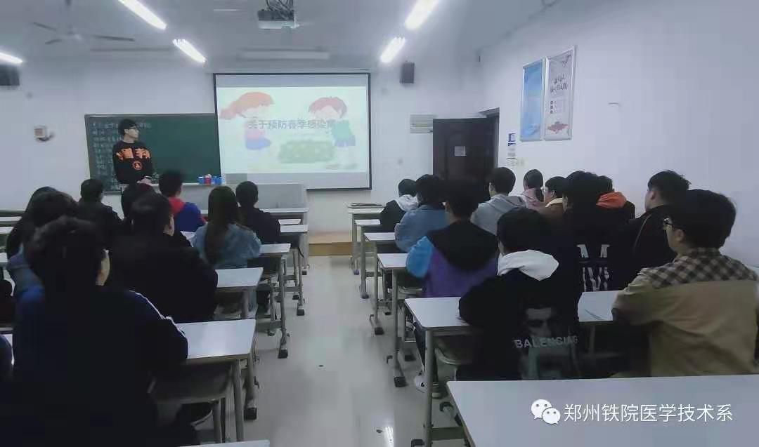 为进一步贯彻国家关于加强学生安全教育相关政策,切实加强学生春季传染病防治工作,医学技术与工程学院于2021年 3月22日6:30-7:20 在三号楼开展以“防治春季流行传染病”为主题的春季流感预防宣传活动,2020级全体学生参加。