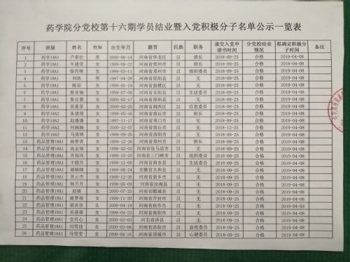 药学院分党校第十六期学员结业暨入党积极分子名单公示